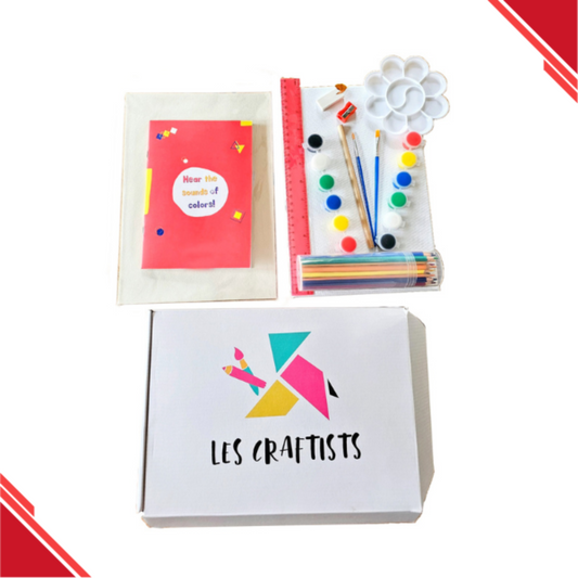 Kids Art Kit with Storage Box by Les Craftists | Includes Art Booklet, 12 Poster Paints, 24 Colored Pencils, Canvas, Drawing Sheets & More