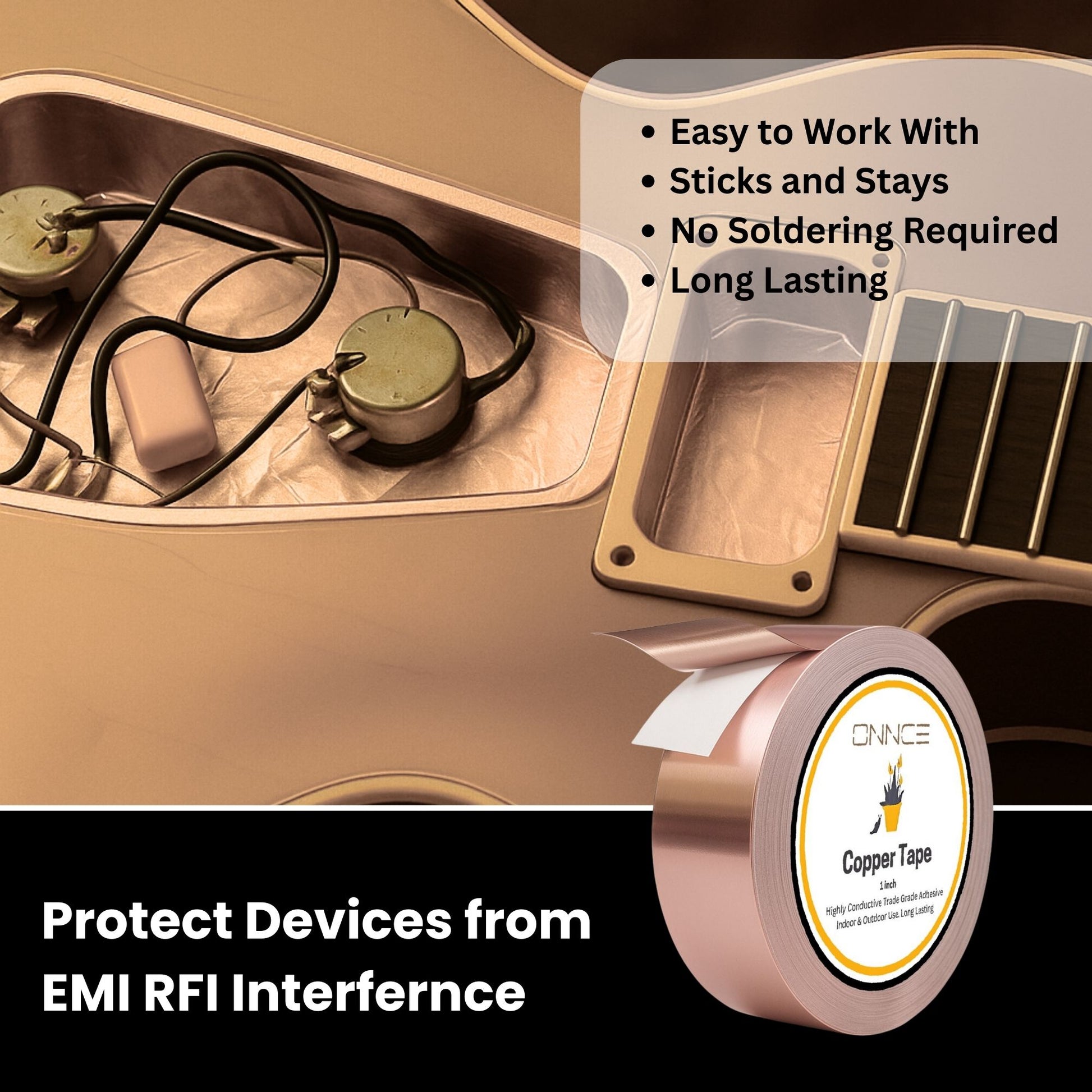 - Ideal for EMI shielding in electronics, audio gear, and guitars for cleaner performance.