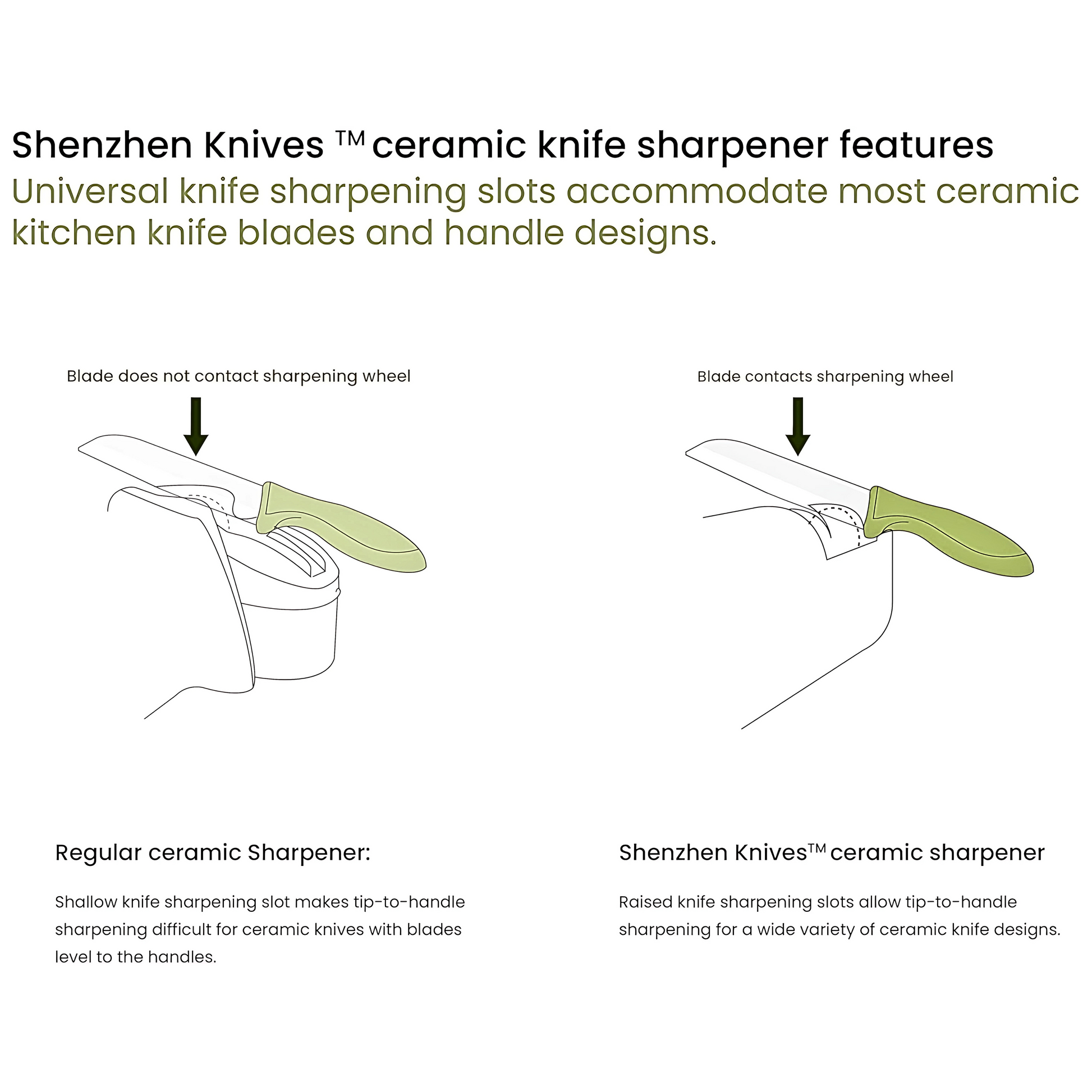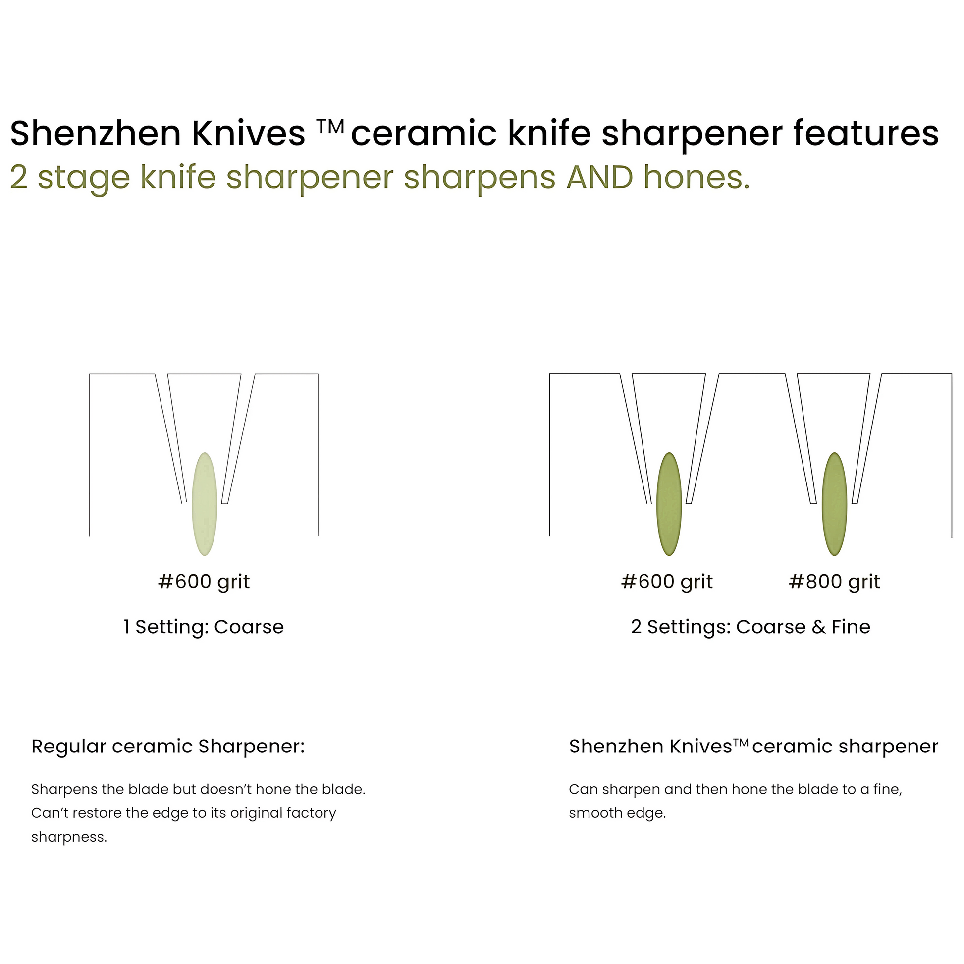 1. Restores dull or chipped ceramic and steel kitchen knives to a sharp and precise edge.