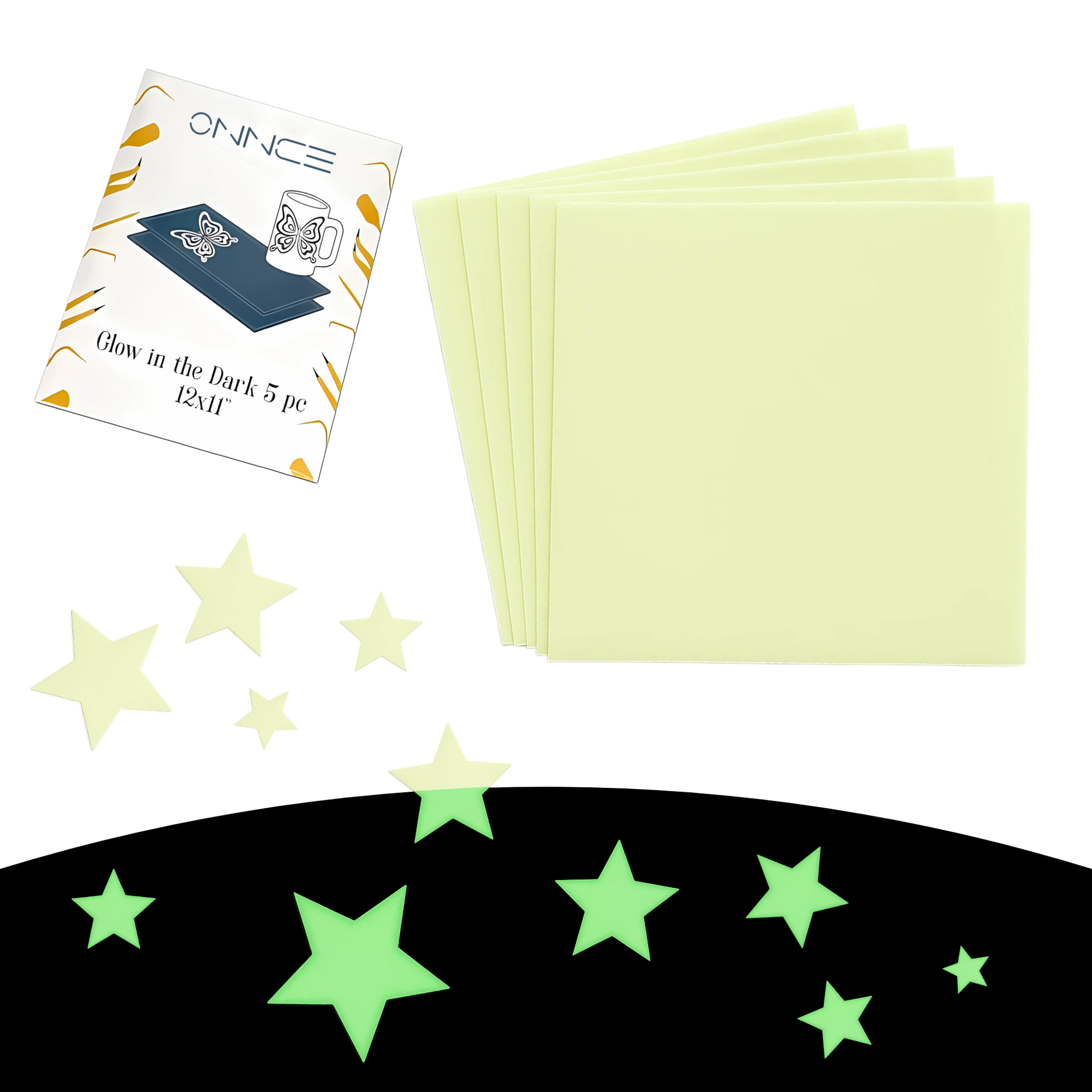 Glow in the Dark Permanent Adhesive Vinyl Sheets by ONNCE, 12 x 11 Inch, 5-Pack