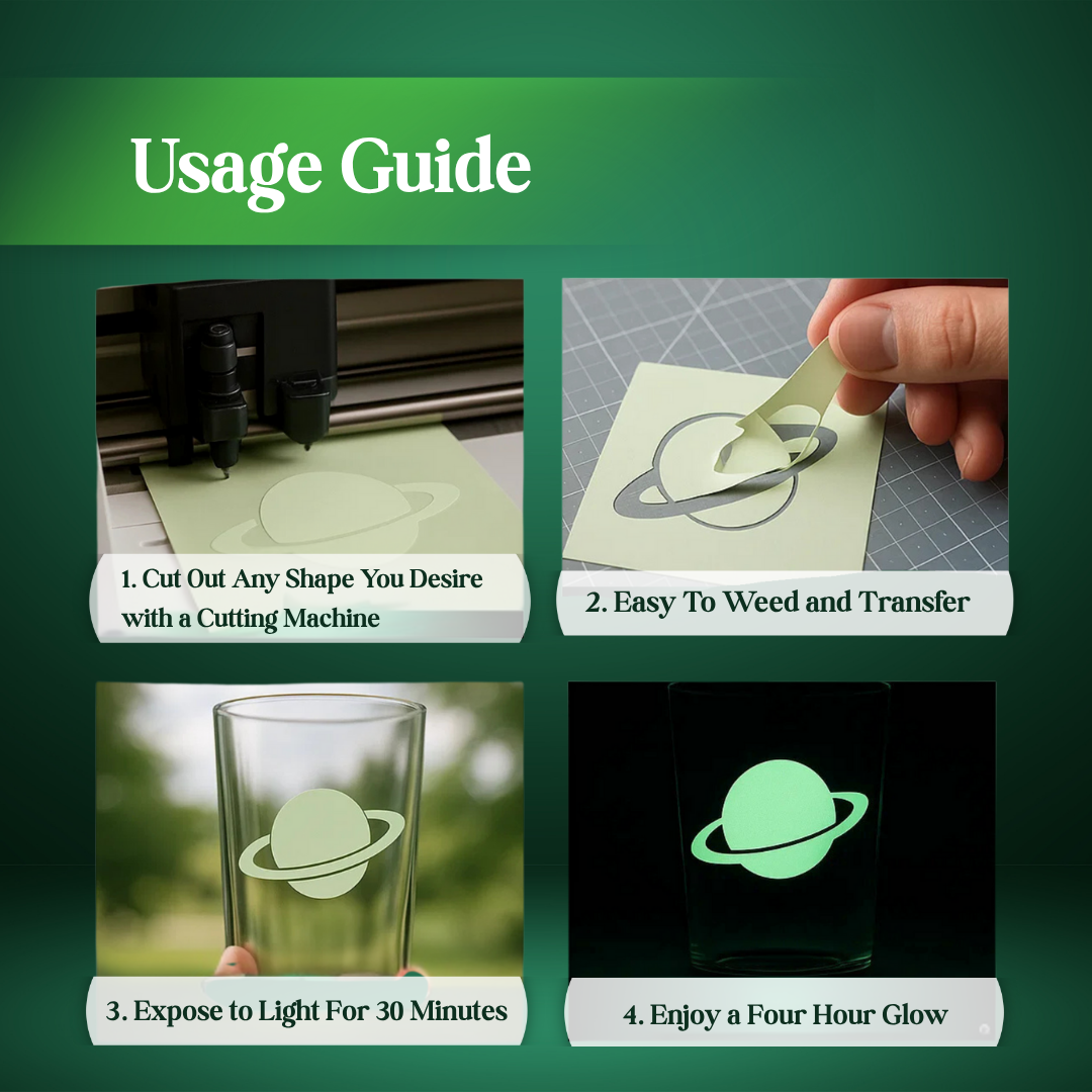 ONNCE Glow in The Dark Permanent Vinyl adds a luminous touch to any project, glowing for up to 4 hours after just 30 minutes of sunlight exposure. This durable, strong-adhesive vinyl sticks to walls, windows, cups, cars, and more, making it perfect for Halloween decorations, DIY crafts, and personalized gifts. Compatible with Cricut and other cutting machines, it’s easy to cut, weed, and apply for both indoor and outdoor use.
