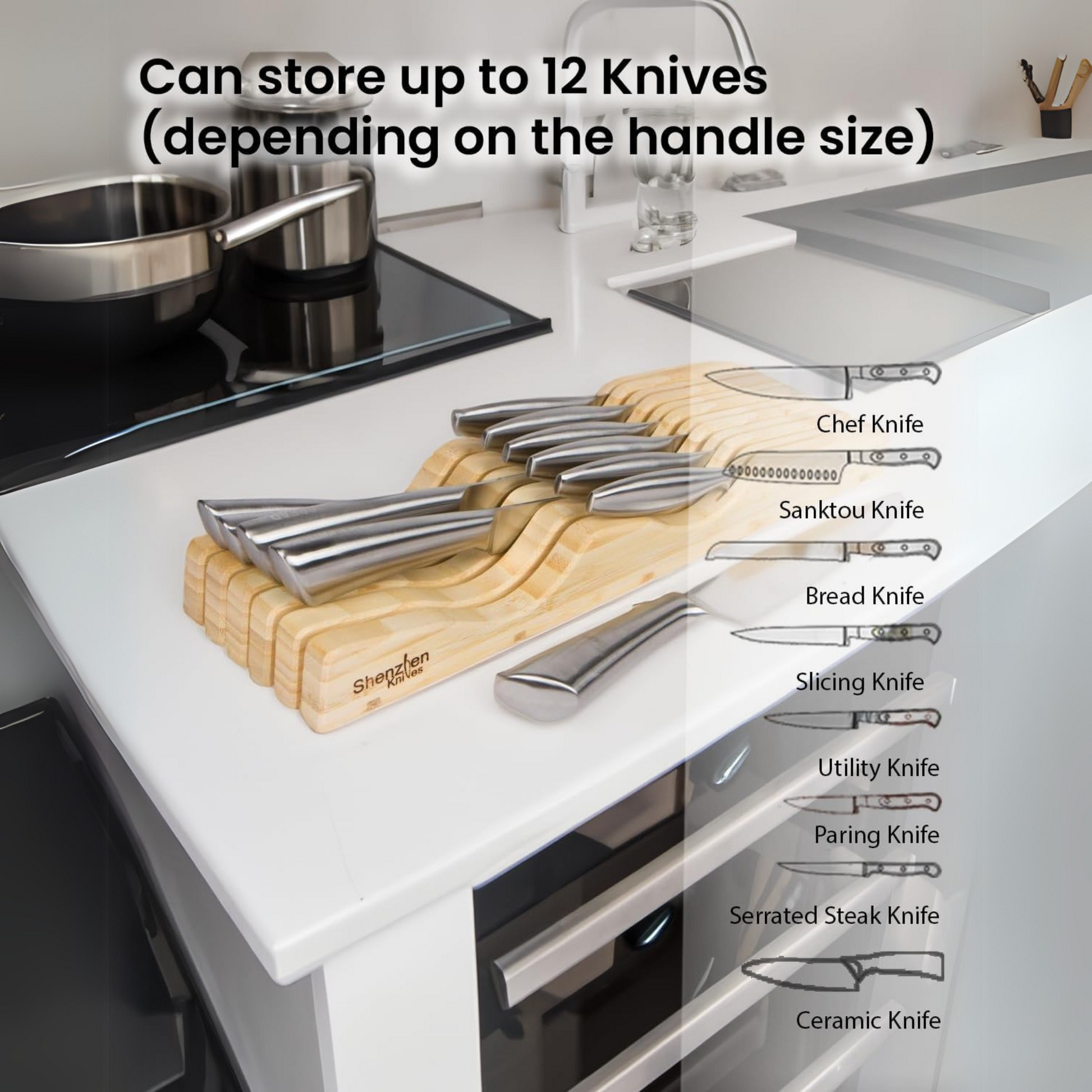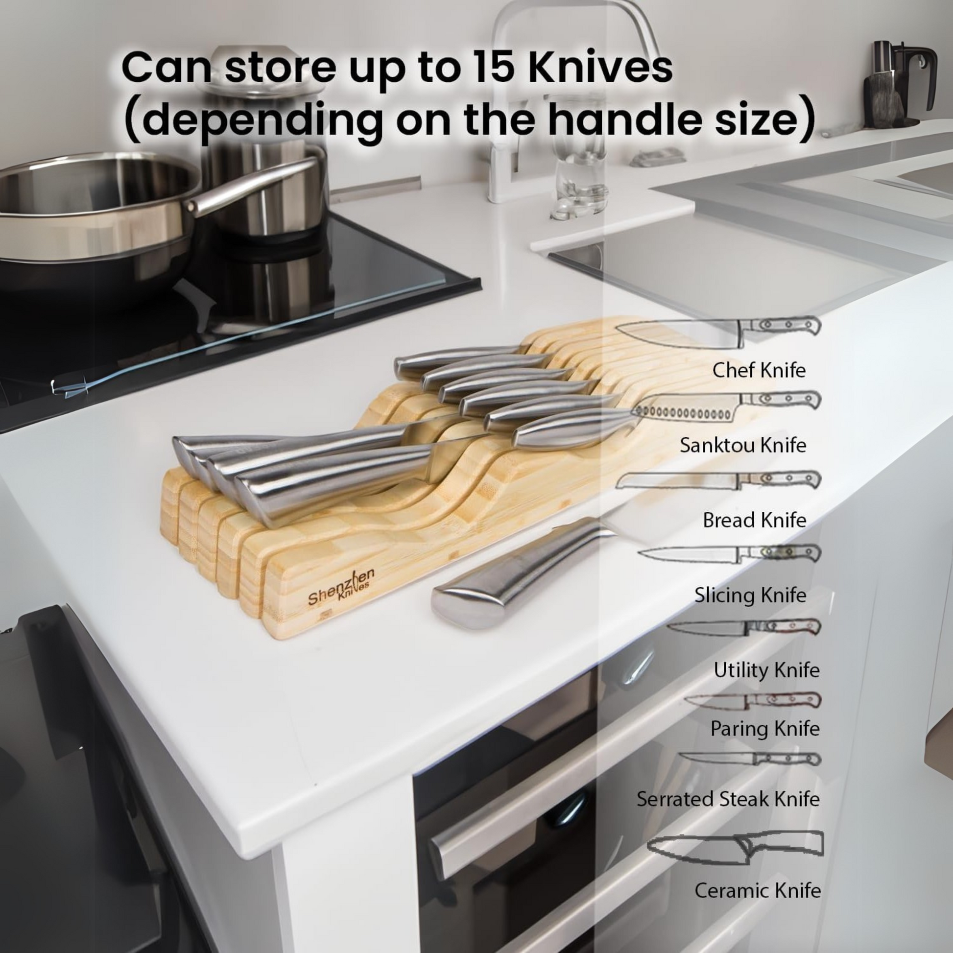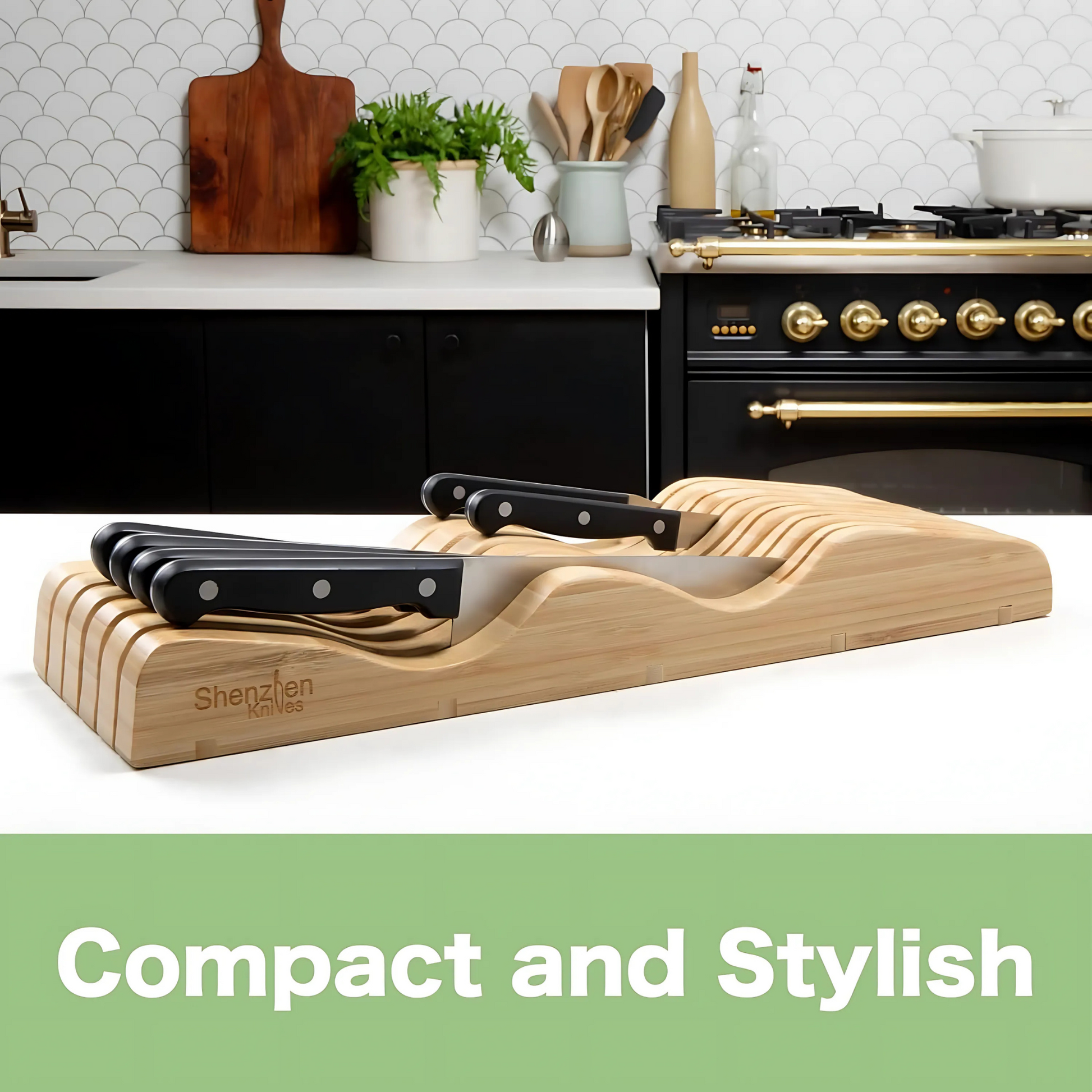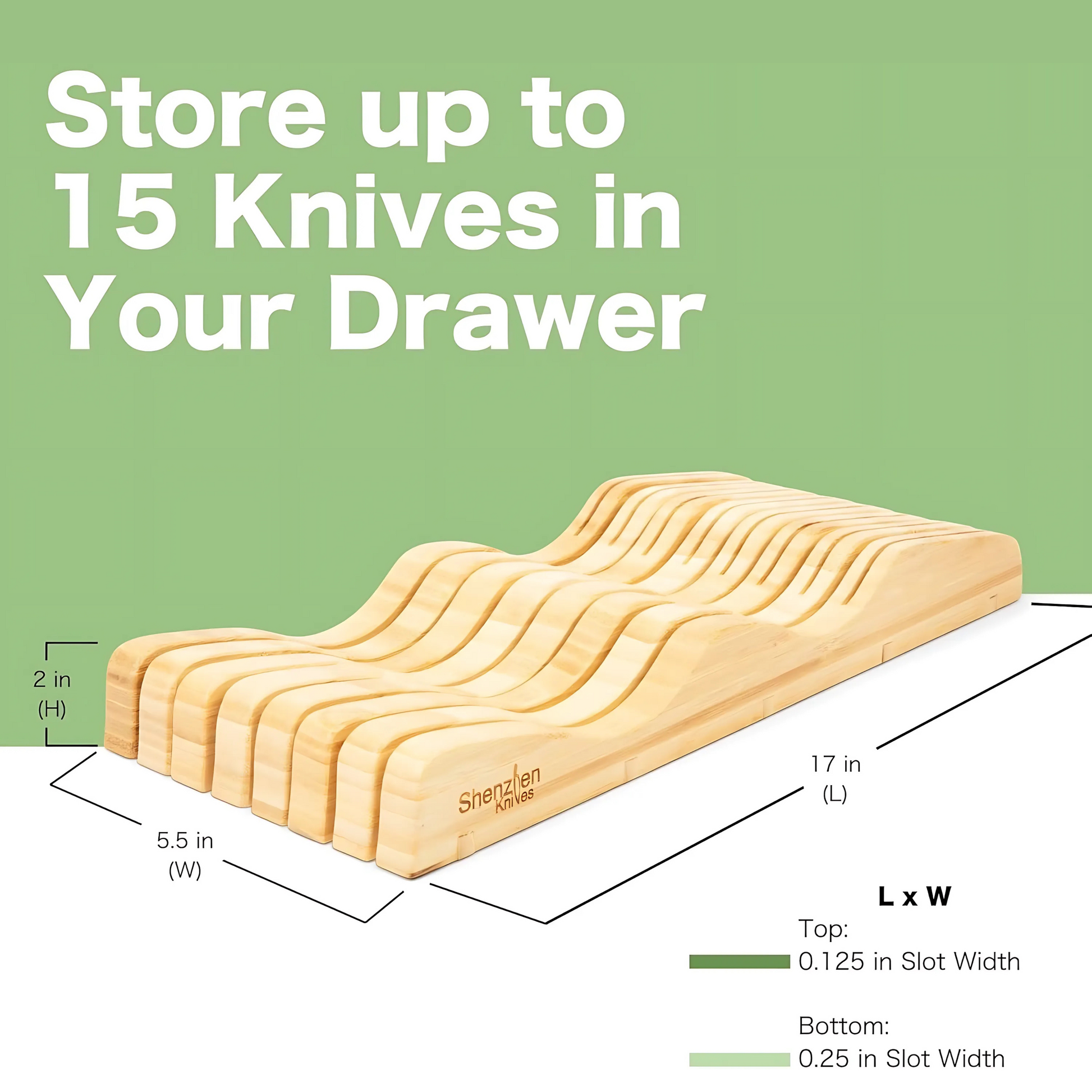 In-Drawer Bamboo Knife Block by Shenzhen Knives – Holds 10–15 Knives