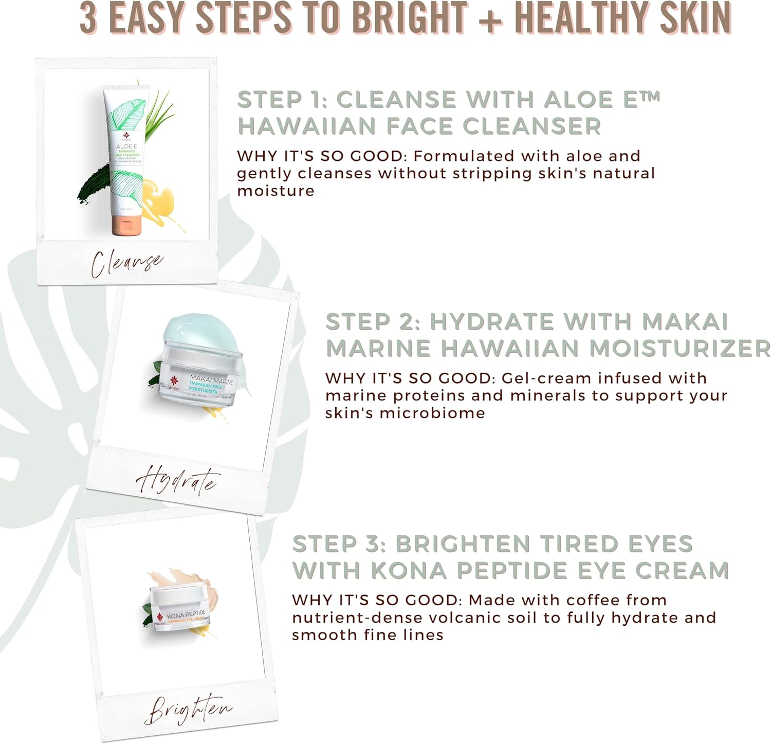 1) Hawaiian-Grown Ingredients: Formulated with botanical extracts sourced directly from Hawaii, including spirulina, kukui oil, and coffee berry fruit extract.